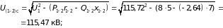 4. За знайденим потокорозподілом середньолінійних потужностей визначимо режим напруги в пунктах схеми мережі за умовами початку (тобто послідовно переміщуючись від джерела живлення з заданим рівнем напруги U0 до кінцевих пунктів схеми з урахуванням закону Ома):