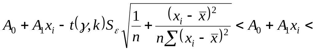 Для проверки адекватности полученной математической модели построим доверительный интервал для парной линейной функции регрессии с заданной надежностью .