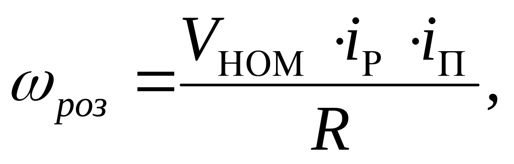 де ωроз – кутова швидкість, 1/с ;