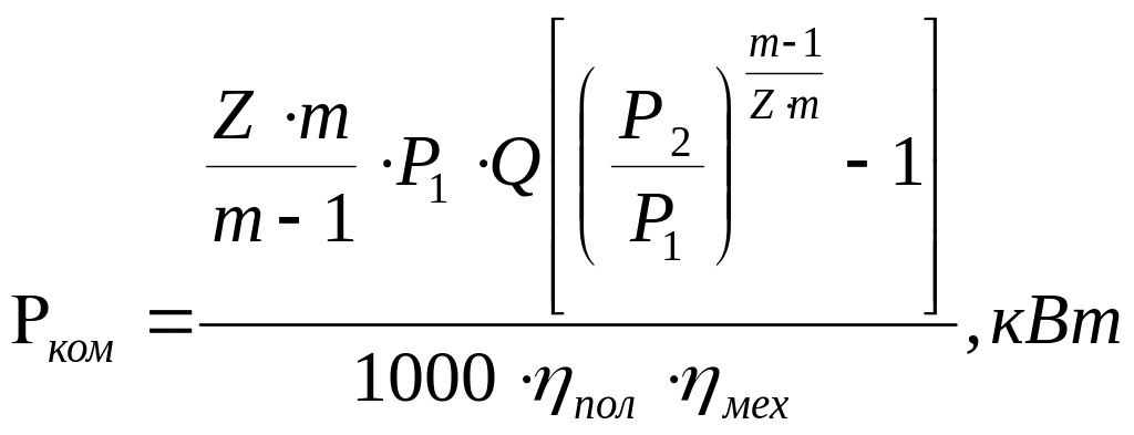 m – показник політропи стиснення; для турбокомпресорів і поршневих компресорів m = 1.2 – 1.35; для відцентрових і ротаційних компресорів m = 1.4 – 1.5;