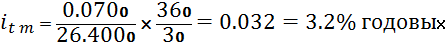 Эффективность (стоимость) форвардной покупки долларов в виде годовой ставки процентов по формуле 1.8. составит: