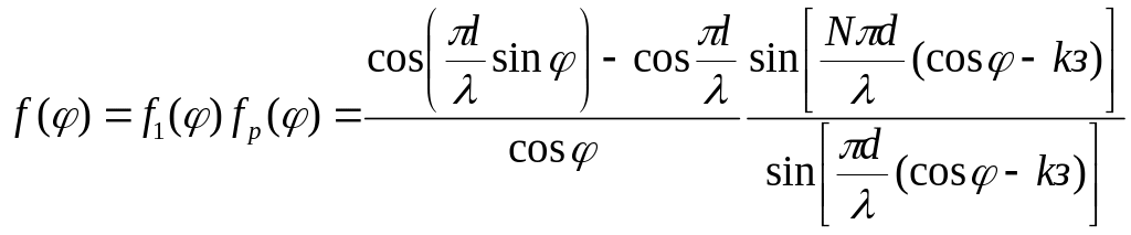 Имея в виду, что ДН решетки из N вибраторов равна произведению ДН одиночного вибратора и множителя решетки, записываем ДН антенны в горизонтальной плоскости как