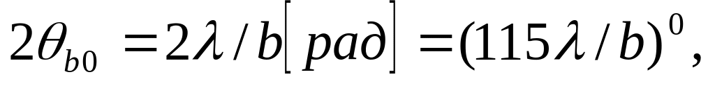 На рисунке 7.2 показана ДН прямоугольного раскрыва в одной из его главных плоскостей (а) и ее составляющие ДН (б, в)