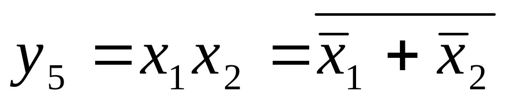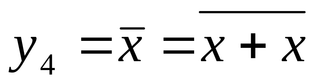 На основе логических элементов И-НЕ (ИЛИ-НЕ) можно реализовать функции И, ИЛИ, НЕ. Это доказывает, что рассматриваемые функции являются базисами, так как базисом является совокупность элементов И, ИЛИ, НЕ. Для этого записывают функцию, которую нужно реализовать, и преобразуют ее так, чтобы в окончательный результат входили конъюнкция и инверсия (при использовании элементов И-НЕ) или дизъюнкция и инверсия (при использовании элементов ИЛИ-НЕ) — табл.1.
