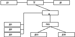 Производственный цикл сложного процесса формируется с помощью циклового графика, для построения которого необходимо знать структуру изделия и длительности производственных циклов простых процессов. Структура изделия задается технологической схемой сборки.