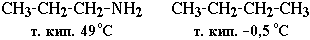 Это объясняет относительно высокую температуру кипения аминов по сравнению с неполярными соединениями со сходной молекулярной массой. Например: