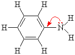 Строение анилина. Неподеленная пара атома азота реагирует с π-системой бензольного кольца. Взаимодействие можно представить так: