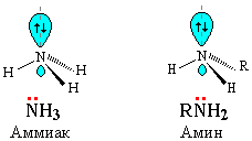 Химические свойства аминов Амины, являясь производными аммиака, имеют сходное с ним строение и проявляют подобные ему свойства Как в аммиаке, так и в аминах атом азота имеет неподеленную пару электронов: