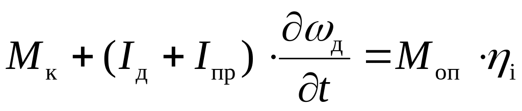 Рівняння динамічної рівноваги двигуна в цьому випадку