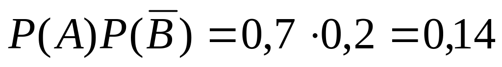 Пример. Два стрелка стреляют по мишени. Вероятность попадания в мишень при одном выстреле для первого стрелка равна 0,7, а для второго – 0,8. Найти вероятность того, что при одном залпе в мишень попадает только один из стрелков.