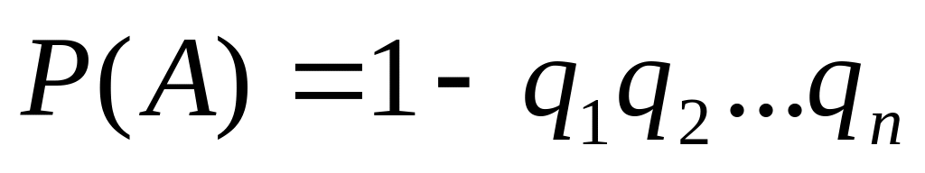 Если в результате испытания может появиться п событий, независимых в совокупности, то вероятность появления хотя бы одного из них равна