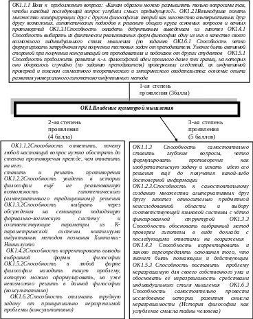 УК1.4.1 Способность выбирать из фактически реализованных форм философии одну из них в качестве своего возможного индивидуального стиля мышления (по заданию преподавателя) |