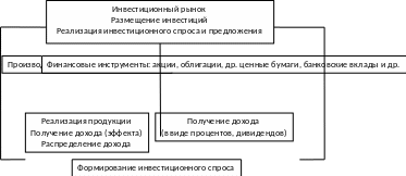 Посредством инвестиционного рынка в рыночной экономике осуществляется кругооборот инвестиций, преобразование инвестиционных ресурсов (инвестиционный спрос) во вложения, определяющие будущий прирост капитальной стоимости (реализованные инвестиционный спрос и предложение). При этом движение инвестиций происходит по схеме, приведенной на рис. 2.1.