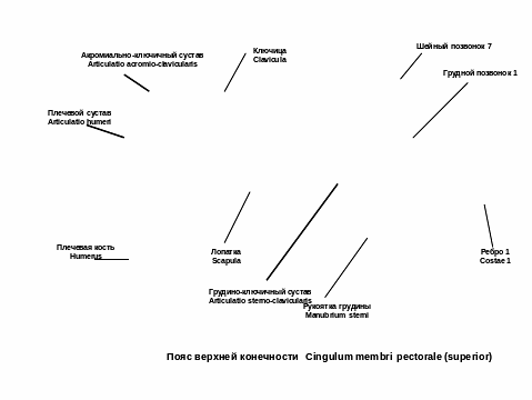 Верхняя конечность ossa membri superior состоит из плечевого пояса cingulum extremitas superiores и из свободной верхней конечности Последняя состоит из плеча, предплечья и кисти. Кости плечевого пояса, состоящие из лопатки, и ключицы соединяют верхнюю конечность с осевым скелетом.