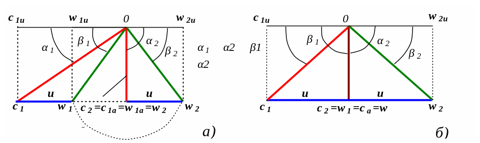 Рис.5.6. Приведенные треугольники скоростей активной (а) и реактивной (б) ступени давления турбомашины