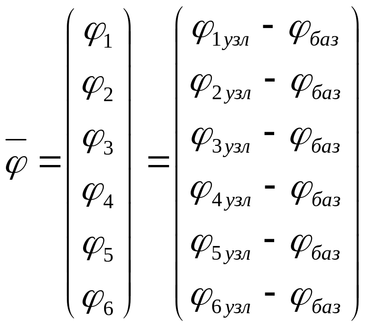 Из уравнения (1) получим уравнение связи переменных типа потенциала (каждая компонента которого представляет собой разность потенциалов между i-ым не базовым узлом и потенциалом базового узла):