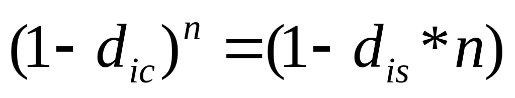 А у відповідності до рівняння складних відсотків множник утримання за обліковою ставкою — це величина (1 - d)n.