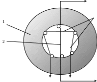 1 – диамагнитное (медное) зубчатое колесо 2 и 3 входная и выходная катушки.