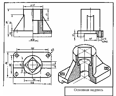 Содержание: Три вида детали с необходимыми разрезами. Выполняется на формате А3.