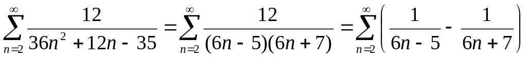 Т.к. корни знаменателя отличаются на целое число, то члены последовательности частичных сумм ряда легко найти, т.к. в выражении многие слагаемые взаимно уничтожаются.
