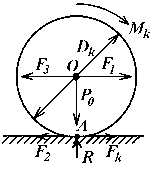 Силой Рсц , то под действием F2 в точке касания колеса с рельсом возникает внешняя сила сцепления Т, которая является горизонтальной реакцией рельса на F2.F2 и T равны по величине, но различны по направлению, поэтому они взаимно уравновешиваются . Остается неуравновешенной F1 , которая заставляет колесо совершать поступательное движение .