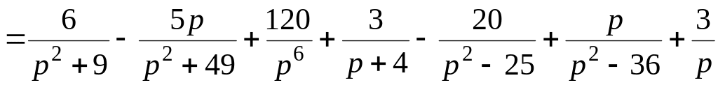 Применение этого равенства приводит к известным формулам изображений элементарных функций, согласно которым