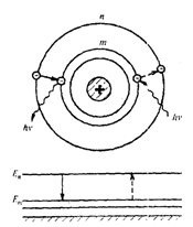 Второй постулат Бора (правило частот): при переходе электрона с одной стационарной орбиты на другую излучается (поглощается) один фотон с энергией