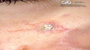 2. У хворого 67 років утворення на шкірі обличчя у вигляді виразки, з кірочкою, з білуватим обідком навколо, розміром 2х3см, з приводу якого самостійно лікувався протягом 2 років. Попередній діагноз: рак шкіри обличчя T2N0M0, кл.гр.ІІ.