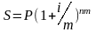 Формула 5. Сложные проценты с начислением процентов несколько раз в году: