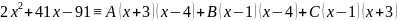 Из этой системы уравнений находим: А = -4, В = -7, С =5.