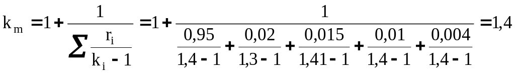 - •6. Определить газовую постоянную смеси, показатель адиабаты газовой смеси и эквивалентные показатели политропы трёх ступенчатого компрессора, если известен состав сухого газа в % по объёму: