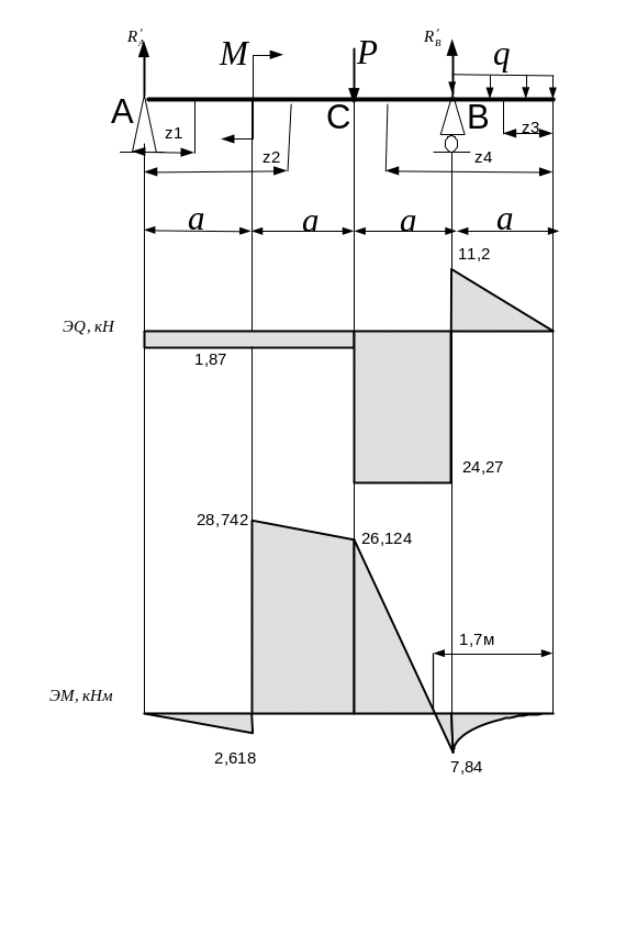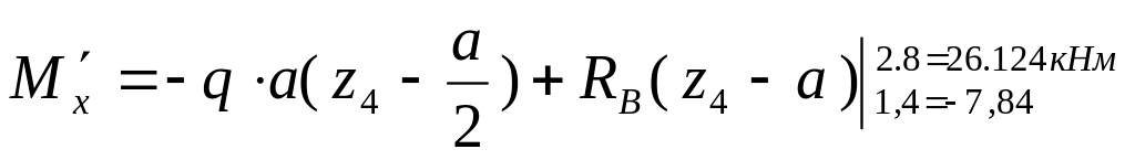 а=1,4м q= 8кН/м Р=22,4 кН М= 31,36 кНм