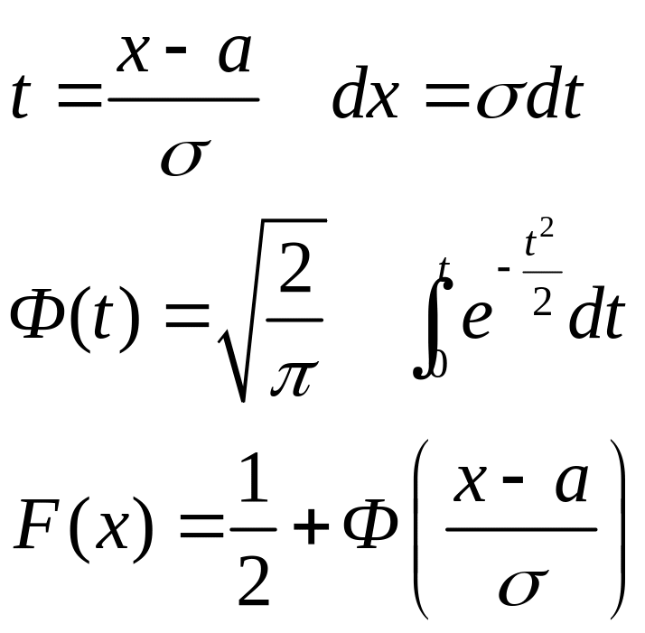 Для вычисления интеграла часто пользуются функцией Лапласа. Для этого делается замена переменной x на t по нижеприведенным формулам, а функция Лапласа Ф(t) табулируется.