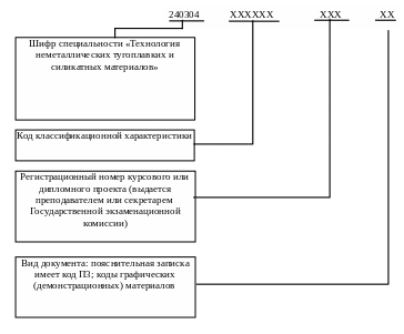 Для дипломных (курсовых) проектов, объектом проектирования которых является производство периклазохромитовых изделий, классификационная характеристика в обозначении, например, может иметь следующий шестизначный код: