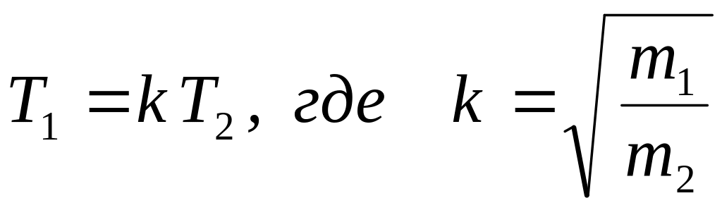с коэффициентом пропорциональности k, равным корню квадратному из отношения масс исследуемых тел.