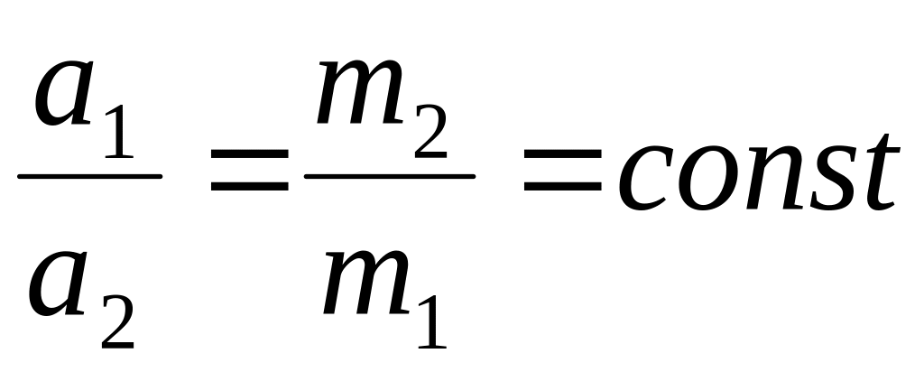 Отношение ускорений останется неизменным и тогда, когда пружина будет растянута до длины L3, L4… Таким образом, можно прийти к выводу о том, что отношение ускорений данных двух тел не зависит от величины действующих на них одинаковых сил. Оно является характеристикой их внутренних свойств – характеристикой их инертности. Если в формуле (4) константу заменить отношением масс тел