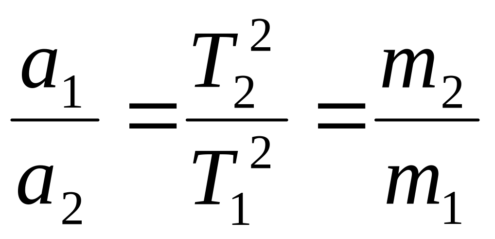 Другими словами, выполненные измерения должны показать, что при одинаковых силах, действующих на тела, периоды обращения диска T1 и T2 связаны между собой прямой пропорциональной зависимостью