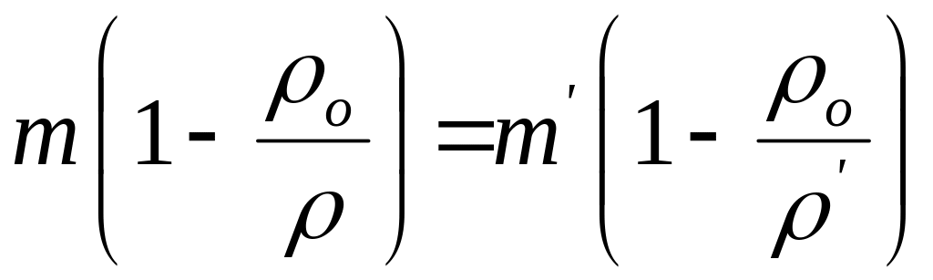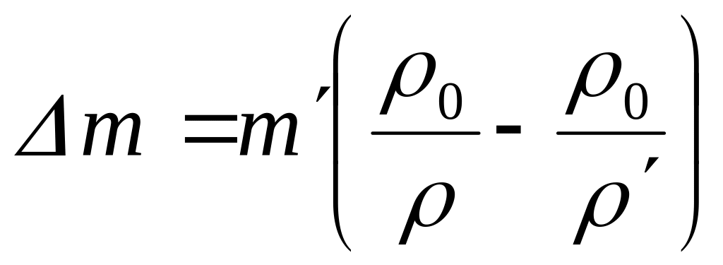 Как видим, в общем случае масса взвешиваемого тела не равна массе разновесок m', уравнивающих его. Различие между ними тем больше, чем больше отличаются плотности и . Величина m = m – m' может существенно превышать точность взвешивания. Она определяется соотношением