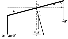 Силы, действующие со стороны чашек весов на коромысло, всегда вертикальны благодаря тому, что чашки могут свободно поворачиваться относительно ребер соответствующих призм. Условием равновесия весов является равенство нулю моментов сил, действующих на коромысло. Если масса одной из чашек m + m, то коромысло установится в положении равновесия, не совпадающим с нулем шкалы.