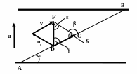 катера образует угол β с направлением