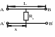 Ответ: x = L(R1 – Ro)/( R1 + R3 – 2Ro) , где Ro = [R3(R1 – R2)]1/2.