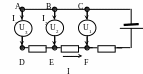 15. Электрическая цепь, показанная на рисунке, собрана из одинаковых резисторов и одинаковых вольтметров. Первый вольтметр показывает U1 = 10 В, а третий U3 = 8 В. Что показывает второй вольтметр?