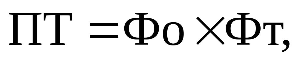 При анализе производительности труда рассчитывают влияние на нее изменения фондоотдачи и фондовооруженности труда. Производительность труда, ПТ, рассчитывается по следующей формуле