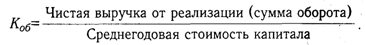 Коэффициент оборачиваемости капитала рассчитывается по формуле: