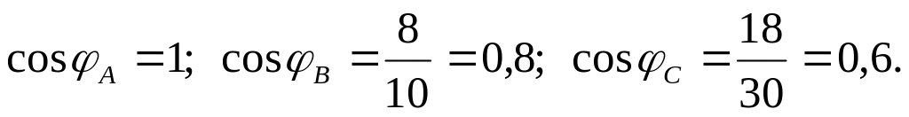 Коефіцієнти потужностей фаз визначимо за формулою (1.20):