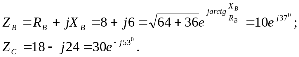 Для визначення фазних струмів знайдемо величини повних опорів у фазах: