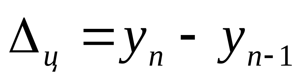 Абсолютное изменение уровней - в данном случае его можно назвать абсолютным приростом - это разность между сравниваемым уровнем и уровнем более раннего периода, принятым за базу сравнения. Если эта база - непосредственно предыдущий уровень, показатель называют цепным, если за базу взят, например, начальный уровень, показатель называют базисным. Формулы абсолютного изменения уровня: