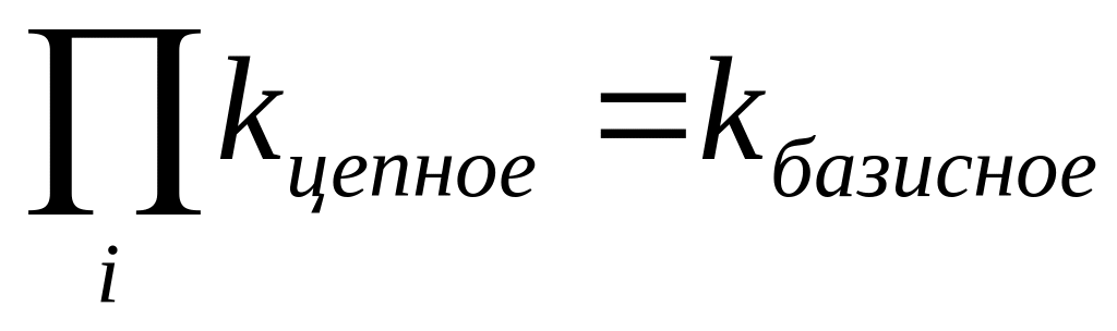 произведение цепных темпов изменения равно базисному темпу изменения: