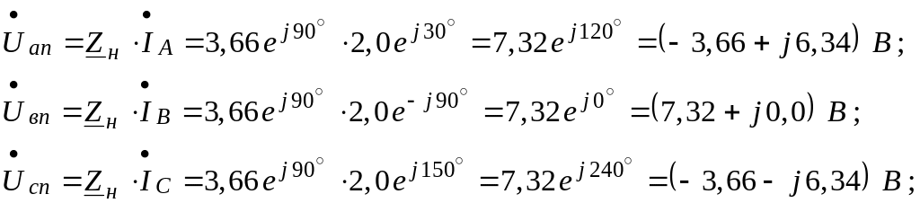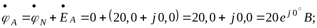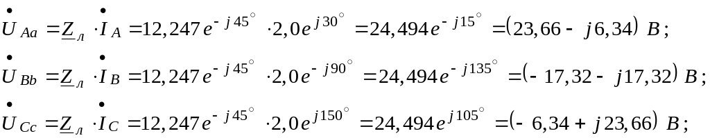 4. Для построения топографической векторной диаграммы находим комплексные действующие значения напряжений на всех участках трёхфазной электрической цепи (рисунок 2.22).