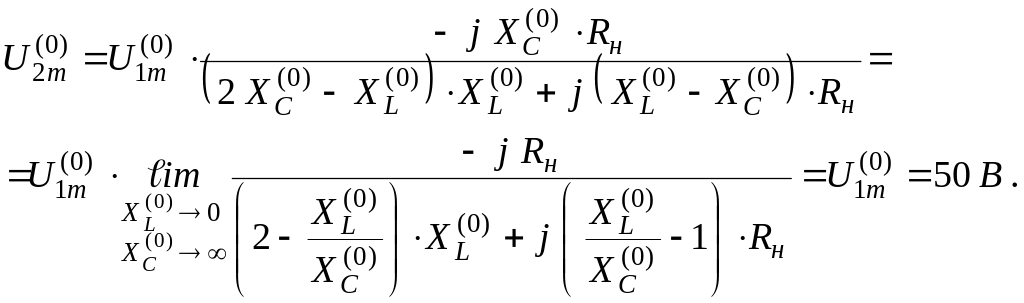 Искомая формула для комплексной амплитуды напряжения на нагрузке через амплитуду входного напряжения :